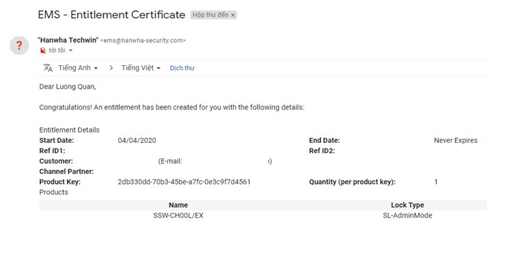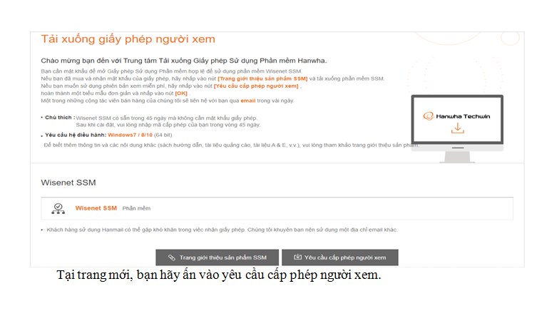 - Bạn có thể nhận key tại trang chủ của hãng ở địa chỉ sau https://www.hanwha-security.com/vn/