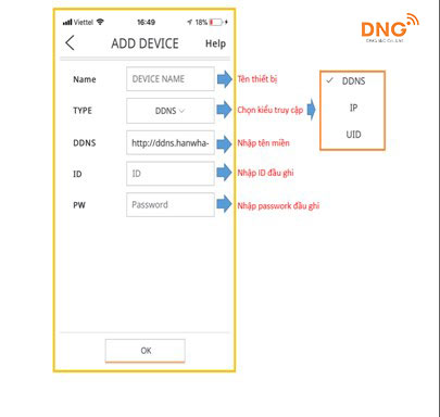 => Nhập vào mục DDNS như sau “http://ddns.hanwha-security.com/TESTCAMERA”