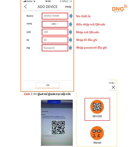 Để nhập thông số cài đặt phần mềm Camera Wisenet trên điện thoại thì có 2 cách là Manual và QR CODE. Sau đây là hướng dẫn nhập theo Manual: