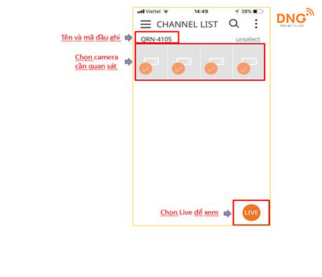 => Chọn camera cần xem