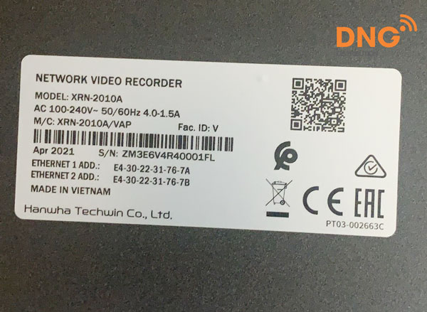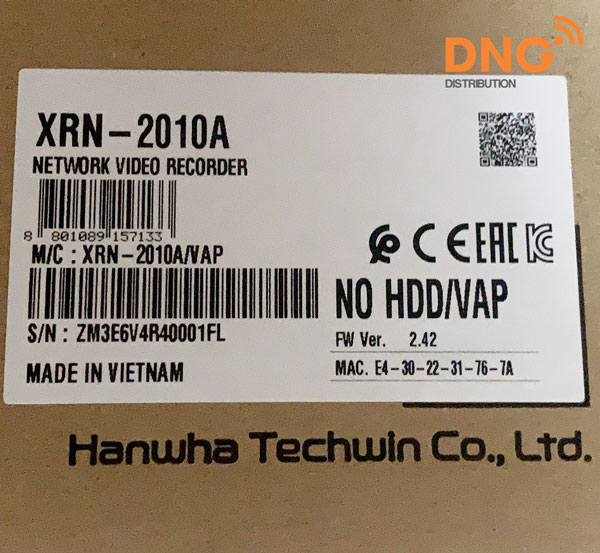 Nhãn trên đầu ghi hình camera Wisenet chính hãng