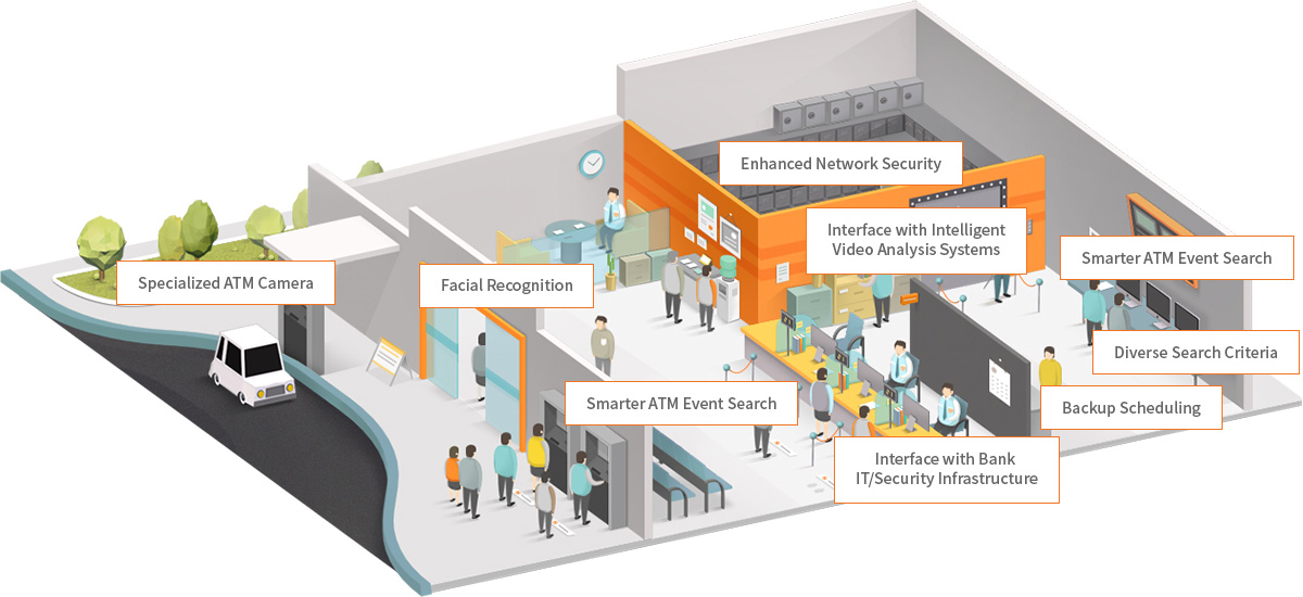 Hanwha Techwin cung cấp một loạt các sản phẩm camera giám sát để khách hàng có thể dễ dàng chuyển từ một hệ thống cũ sang một hệ thống mới với đầy đủ tính năng hiện đại. Ngoài các sản phẩm camera giám sát, chúng tôi cũng cung cấp các hệ thống linh hoạt với khả năng mở rộng vượt trội. Và có thể được sử dụng để tích hợp với các hệ thống bảo mật khác mà ngân hàng đang sử dụng. Sản phẩm của chúng tôi cung cấp khả năng quản lý tuyệt vời, thông qua các công cụ để quản lý thiết bị một cách nhanh chóng và dễ dàng tại các chi nhánh ngân hàng.