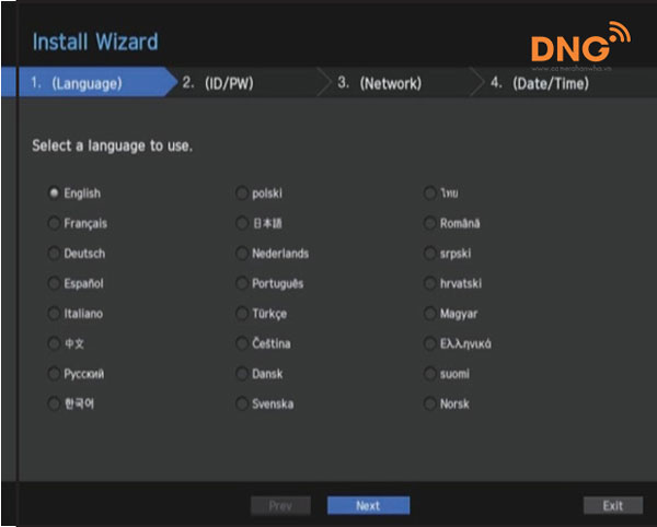 2. Trong màn hình <Ngôn ngữ>, chọn ngôn ngữ và nhấn nút <next>.