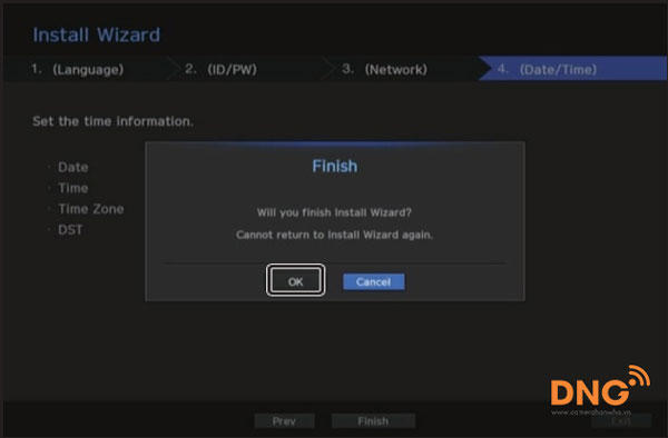 4. Sau khi thiết lập cài đặt ngày / giờ trong màn hình <date / time>, nhấp vào nút <finish> để khởi chạy cửa sổ hoàn thành cài đặt.