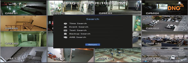 Bạn có thể thực hiện tìm kiếm dữ liệu được ghi lại theo thời gian hoặc bằng các tiêu chí tìm kiếm như một sự kiện. Bạn có thể truy cập trình đơn <tìm kiếm> trực tiếp trong chế độ Trực tuyến