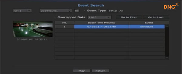 Tùy thuộc vào trình đơn đã chọn, nó sẽ tìm kiếm tất cả các sự kiện ghi nhận chuyển động / phát hiện / phân tích video / phát hiện âm thanh / phát hiện âm thanh / cảm biến / lịch trình / sự kiện ghi âm tiêu chuẩn.