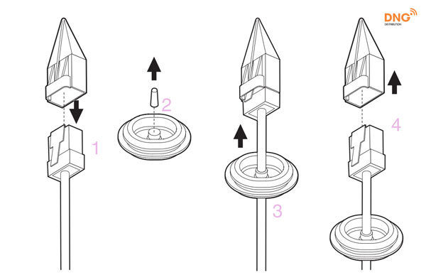 Lắp phần đầu dây mạng vào phần đầu của camera.