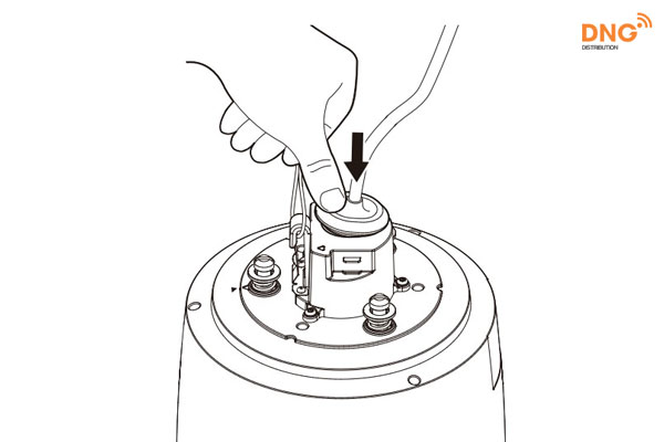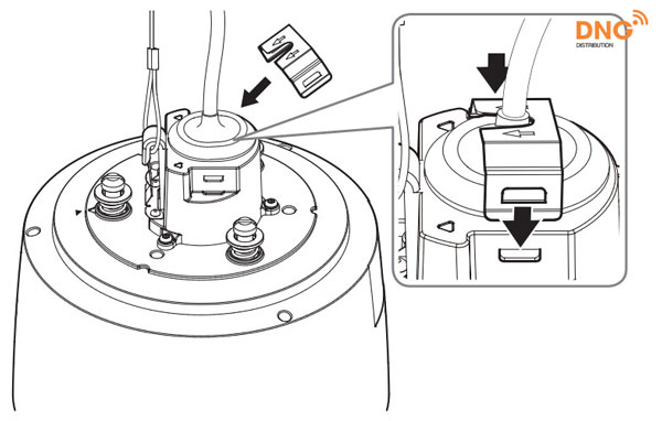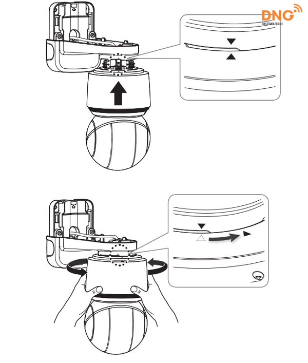 Bạn tìm kiếm phần răng cưa như hình dưới đây ở các sản phẩm camera PTZ mới của Wisenet, sau đó vặn nó theo chiều kim đồng hồ.