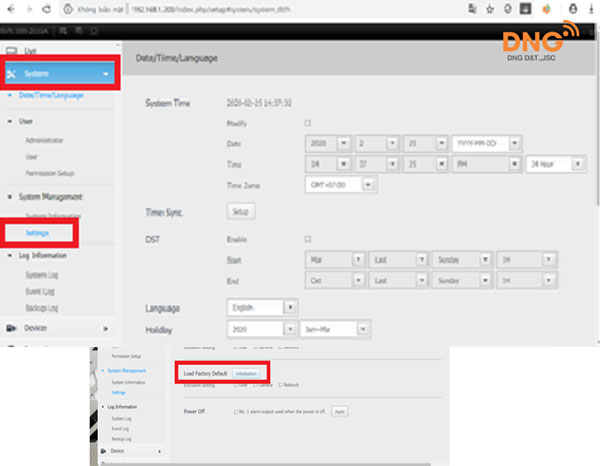 Bước 3: - Sau khi đã truy cập vào System Management, click chọn Setting sau đó chọn tiếp Initialization.