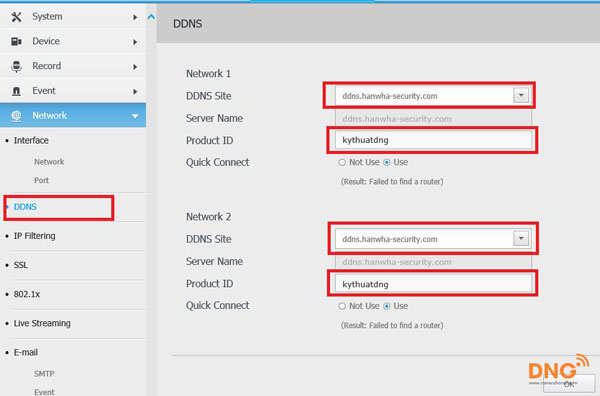 - Trên máy tính/ Trên trình duyệt Web: Nhập link: http://ddns.hanwha-security.com/kythuatdng