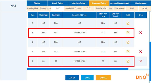 Tiến hành mở 2 Port này, ngoài ra bạn có thể mở thêm HTTPS Port là: 443
