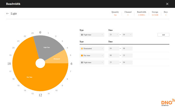+ Light Setup: Tùy chỉnh ánh sáng của môi trường cũng sẽ giúp bạn tính toán chính xác dung lượng hơn vì khi camera hoạt động trong môi trường thiếu sáng như ban đêm sẽ tốn nhiều dung lượng hơn so với camera hoạt động trong môi trường có ánh sáng mặt trời.