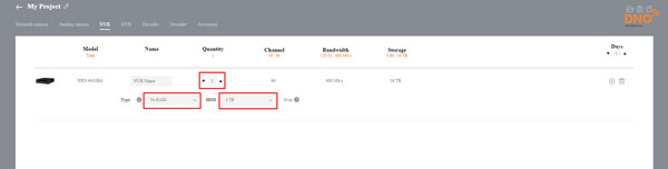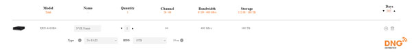 Sau khi tùy chỉnh sản phẩm theo dự án, bạn sẽ tính ra được với số lượng camera trong dự án của bạn sẽ tương ứng với lượng tiêu tốn dung lượng lưu trữ là bao nhiêu. Ví dụ ở đây: với 56 Camera QNO-6072R tiêu tốn khoảng 152GB vì vậy cần lắp 16 ổ cứng 10TB cho đầu ghi XRN-6410B4 để có thể lưu trữ dữ liệu trong 1 năm.