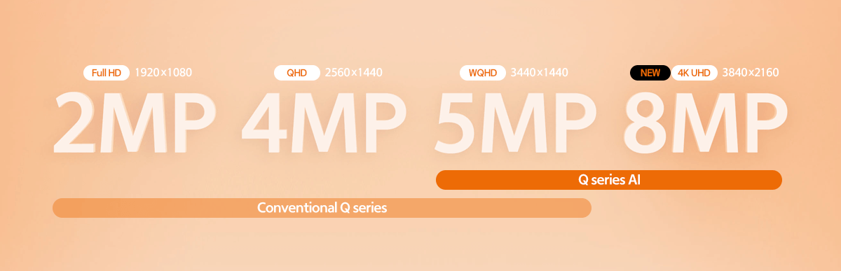 Dòng camera AI Q cung cấp nhiều loại camera có độ phân giải từ 2MP đến 8MP, do đó người dùng có thể lựa chọn camera phù hợp với nhu cầu về môi trường.