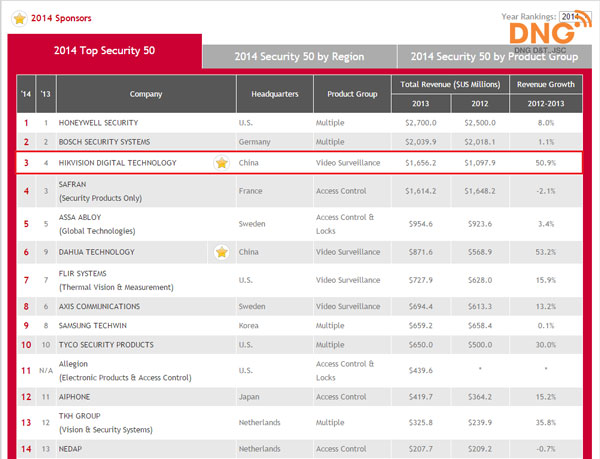 Vào tháng 01/2015, tạp chí nổi tiếng về lĩnh vực thiết bị an toàn an ninh là A&S Information Statistics đã công bố bảng danh sách 50 công ty hàng đầu đại diện cho ngành hàng công nghiệp hệ thống thiết bị an toàn – an ninh trên thế giới trong đó Samsung CCTV nằm trong vị trí thứ 9. Như vậy, đây chính là một trong những những lý do tiếp theo mà chúng ta nên sử dụng sản phẩm đến từ thương hiệu camera này.